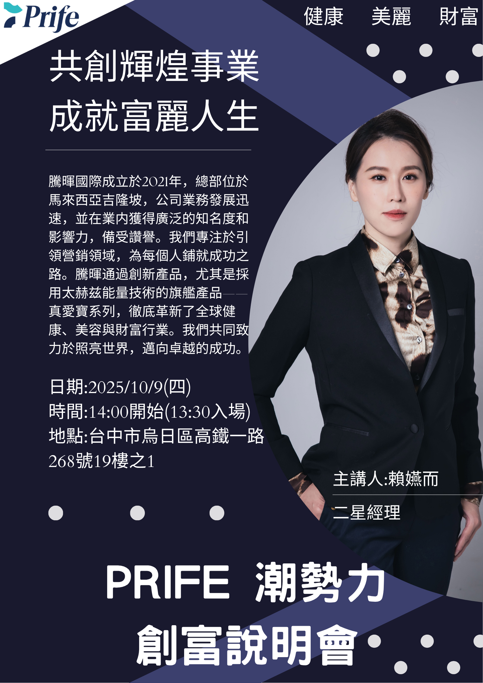 PRIFE 台中潮勢力創富說明會~賴嬿而老師