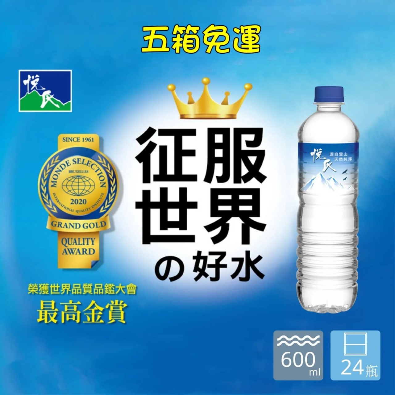 悅氏 礦泉水(600ml/24瓶/箱)「5箱免運優惠」